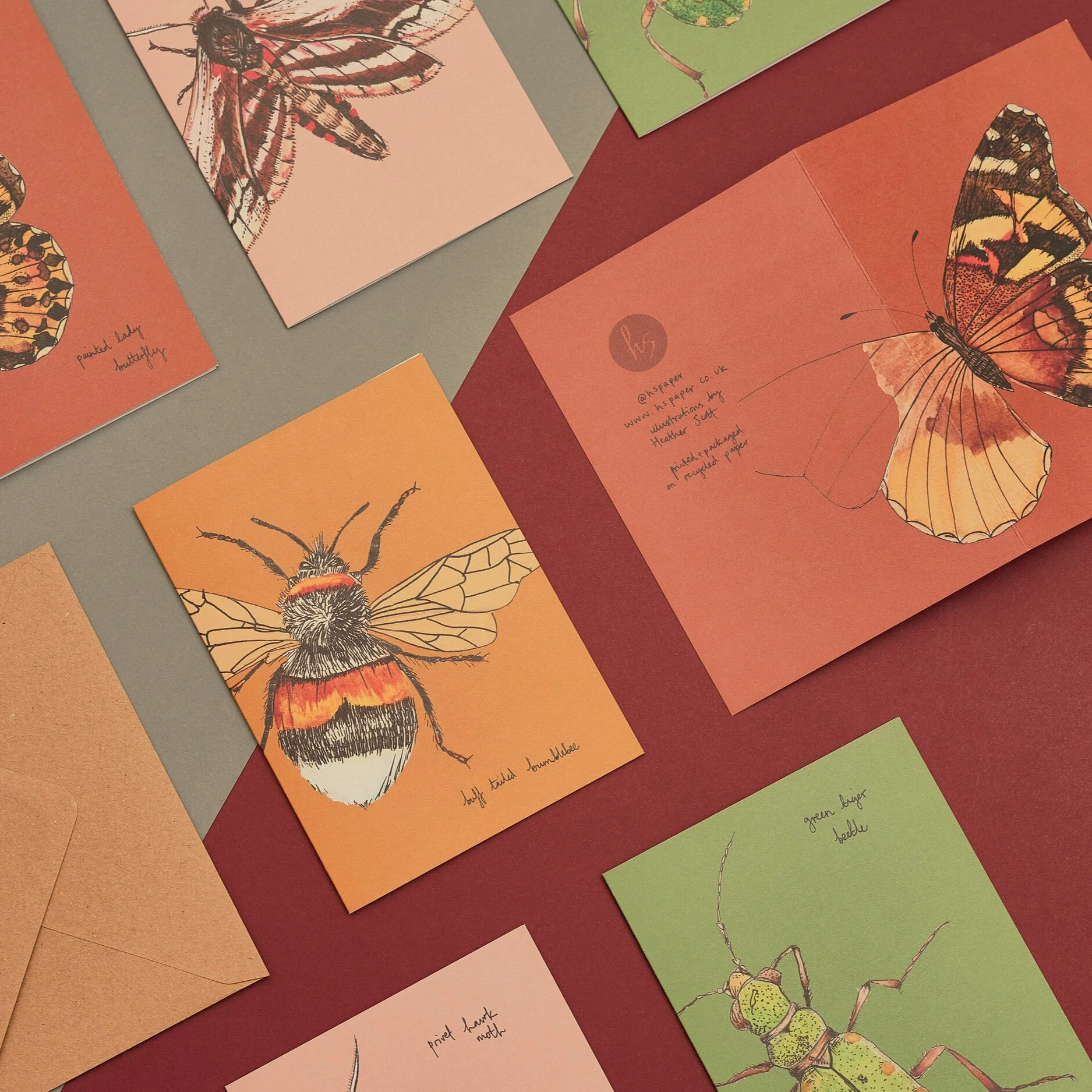 Set Of 8 British Insects Greeting Cards / Recycled Card