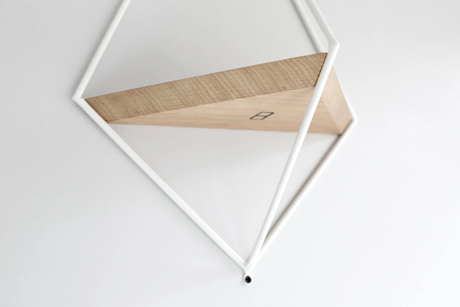 Give your prize plants or objects the stage they deserve with this statement-making, wall-mounted plinth. Inside a geometric steel frame sits a triangular, solid ash or oak shelf. Designed for impact and simplicity, the Toro Plant Hanger fixes to the wall with just two screws, top and bottom.